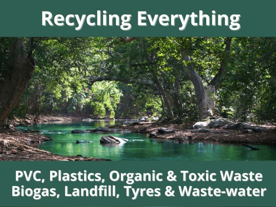 - "Recycling Communal Waste & Landfills": Gyorsan alakít át hatalmas mennyiségű PVC-t, gumit, toxikus, kevert, szét nem válogatott, műanyag, kommunális, szerves és lerakói hulladékot olajjá, gázzá, szénné és vízzé. Gépenként napi 1–250 tonna kapacitás.